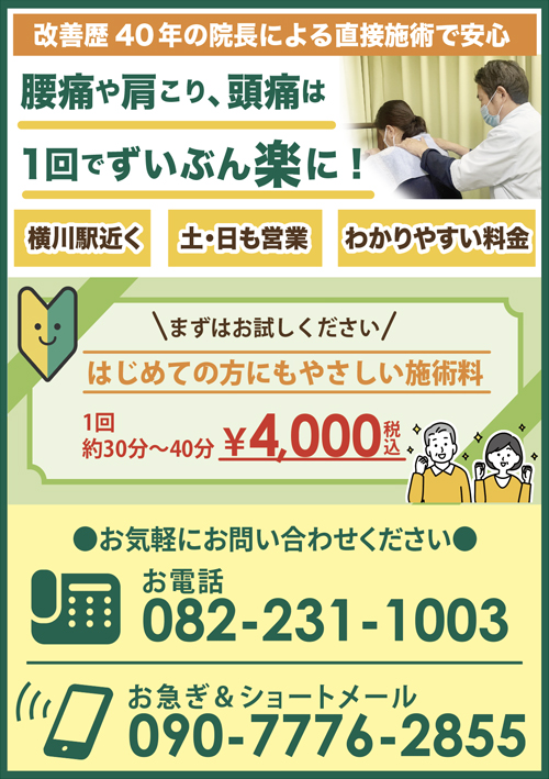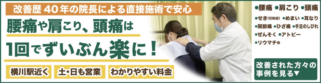 当院の施術は、体が本来持っている自然治癒力を高め、痛みや炎症の元である老廃物を毛穴から体の外へ吸い出し、体のズレを手技によって矯正していきます。