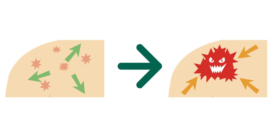 特に自然治癒力の弱っていると、関節や内臓、弱っているところにたまりやすく、やがてそれらが痛みや炎症を引き起こします。
